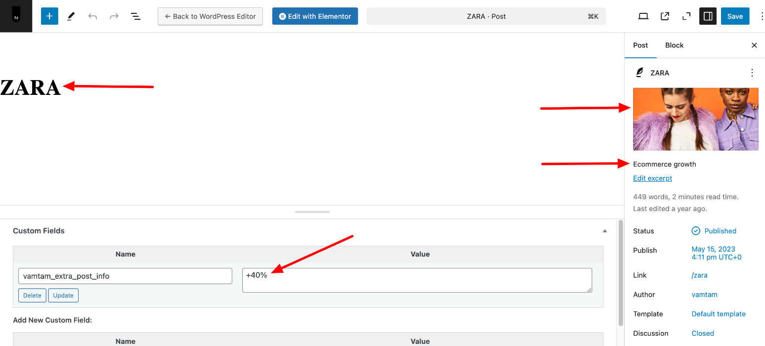 The statistic number pulls the individual content from the post Custom field. Click on "Edit" and locate the Custom field at the bottom of the page: