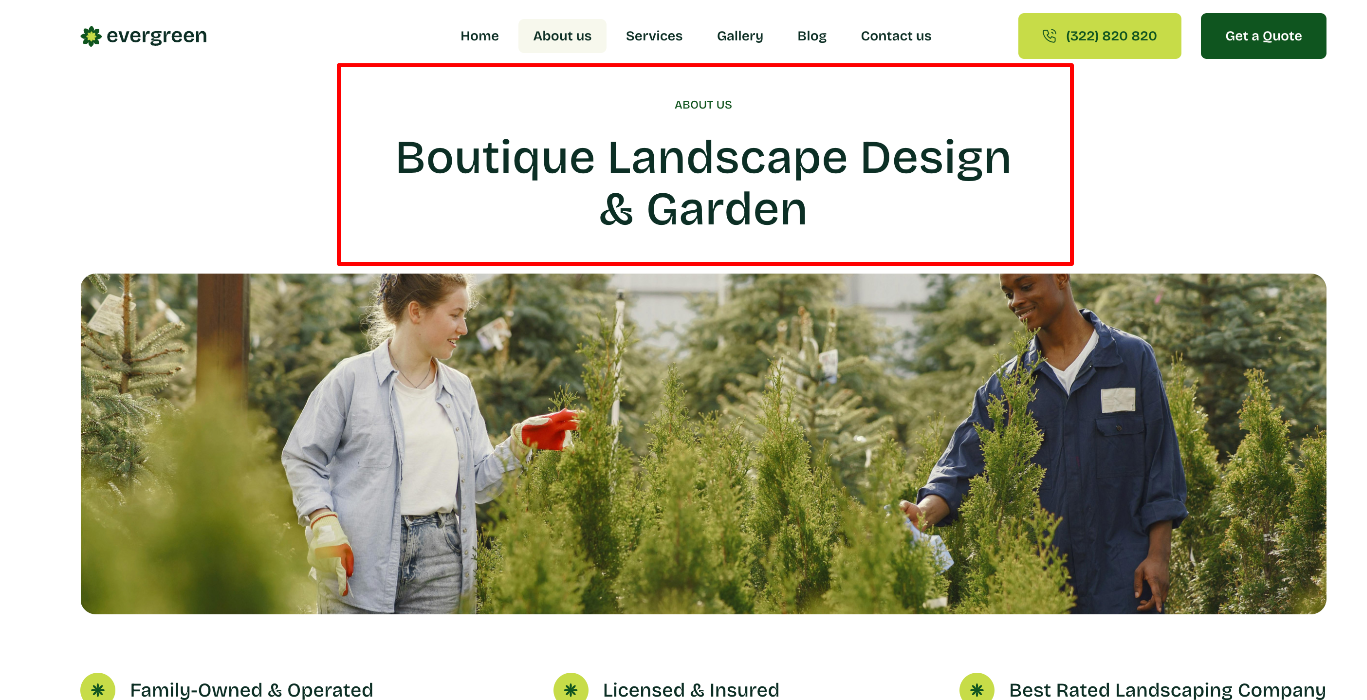 Check the instructions below for how to change the About Us page elements: title, subtitle and content.