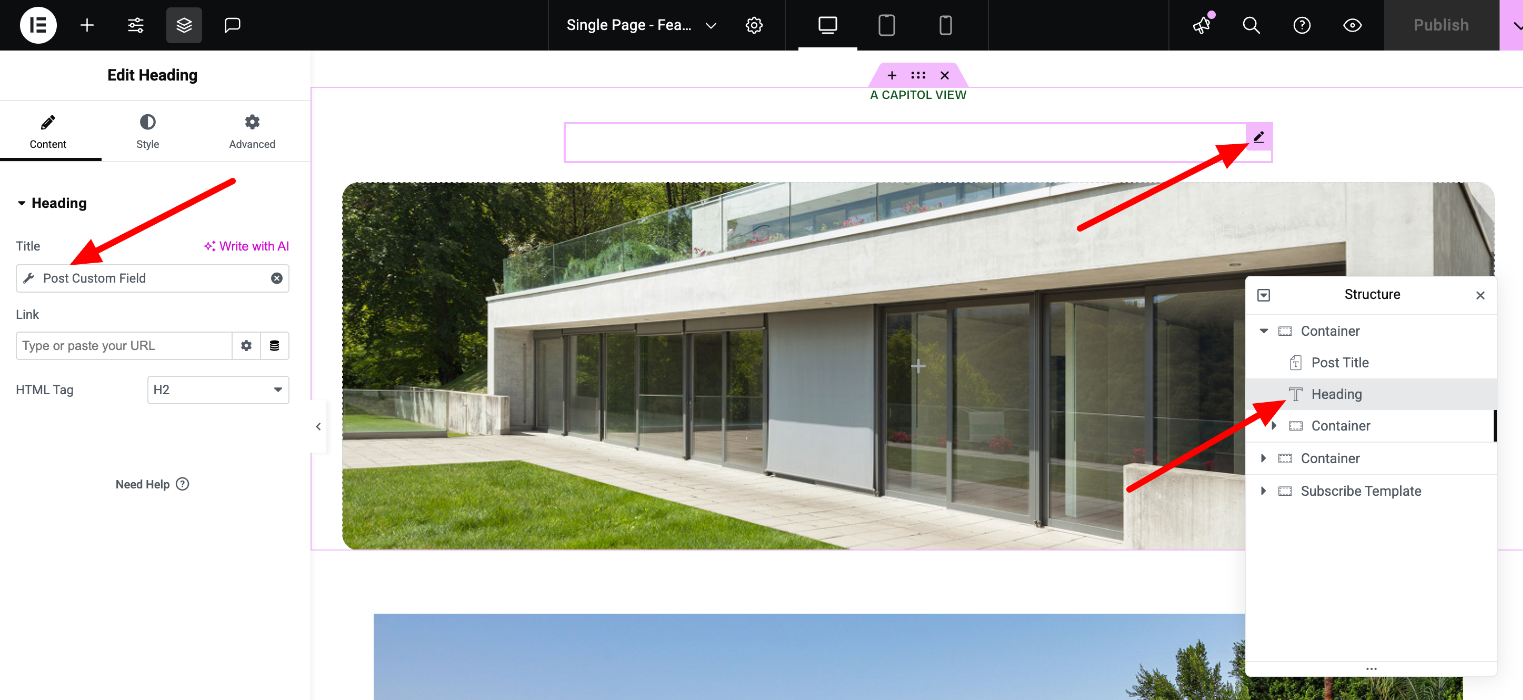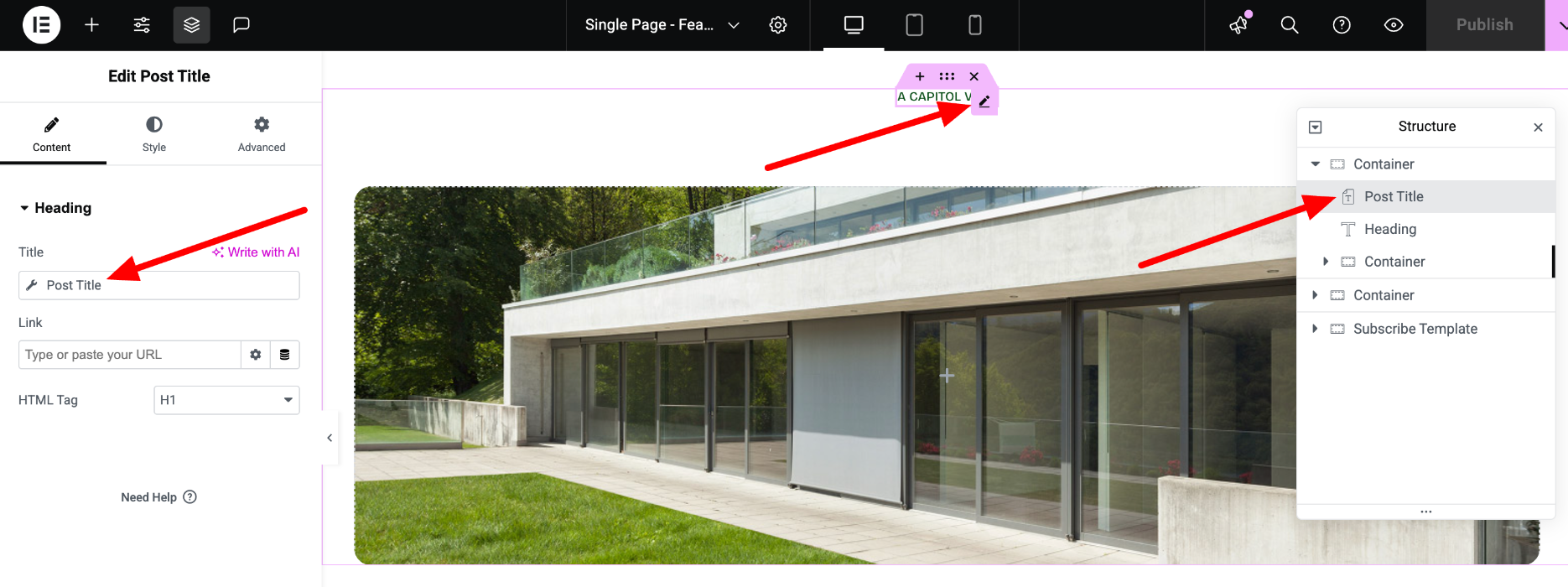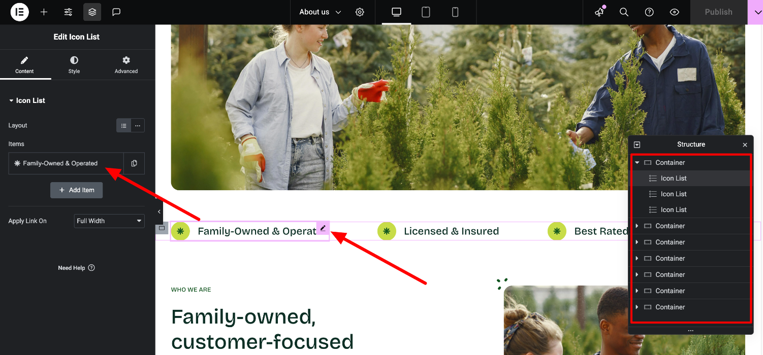 Edit the page's content easily, by locating each Elementor widget in the Navigator (The "Structure" section on the right)