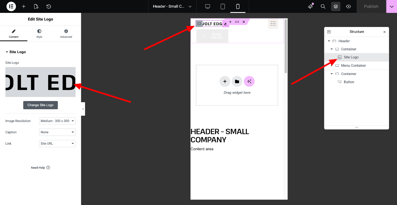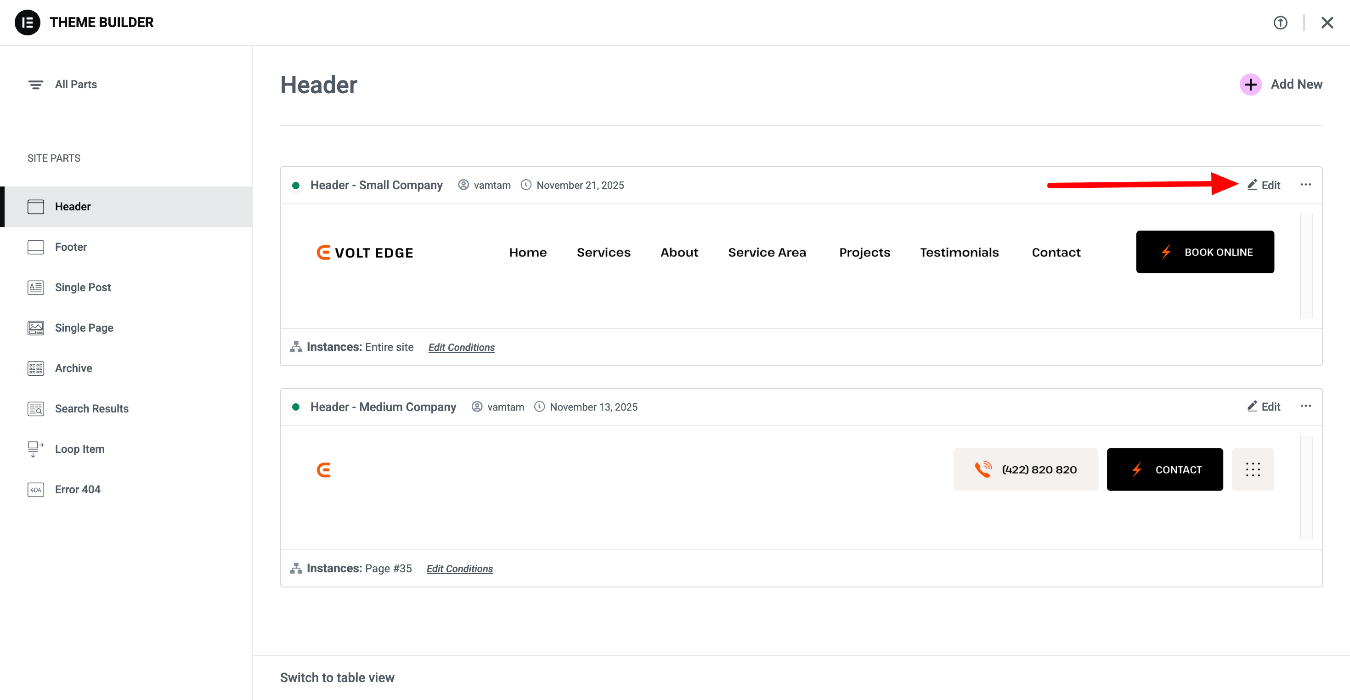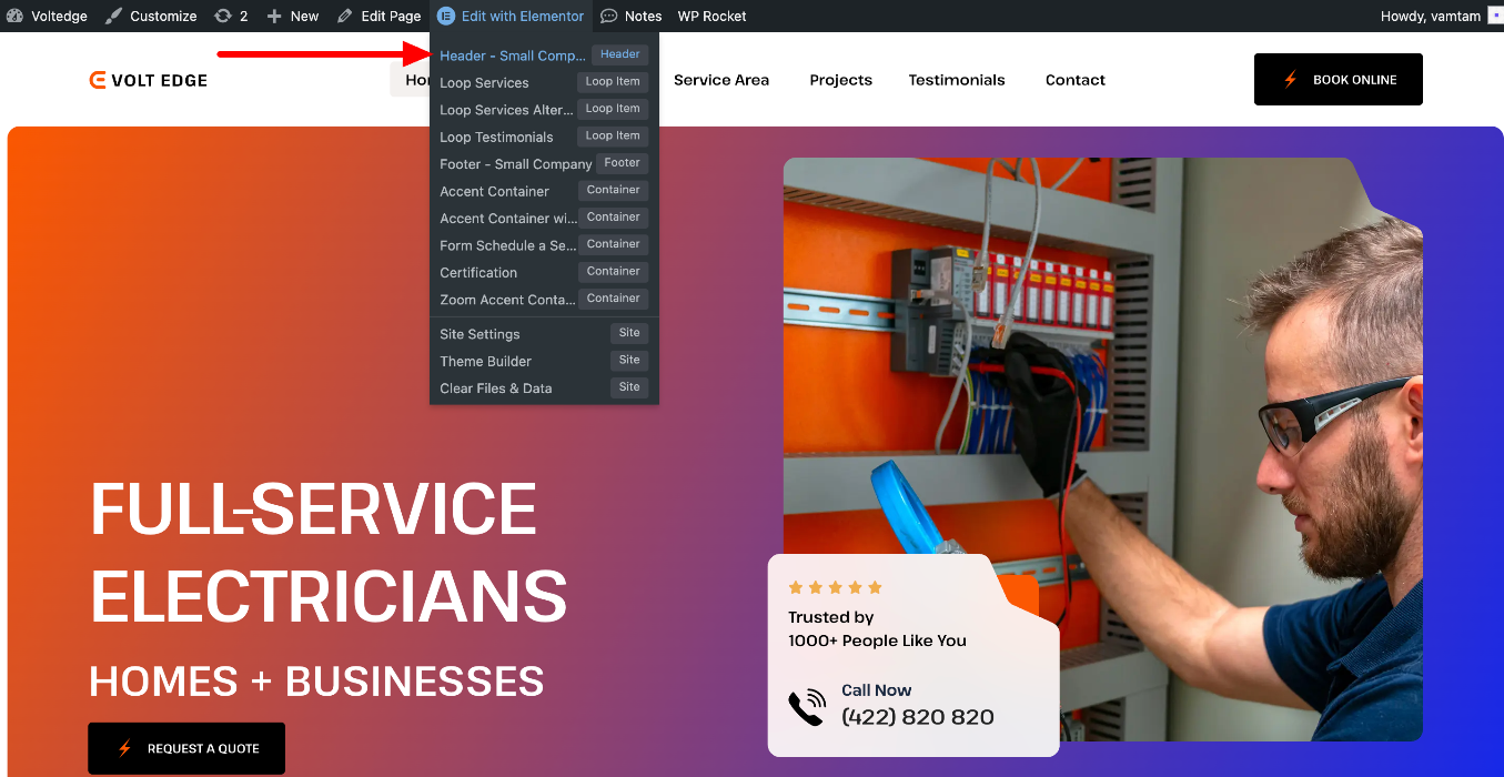 To begin, navigate to the Toolbar > Edit with Elementor > Header (the name of the template may be different)