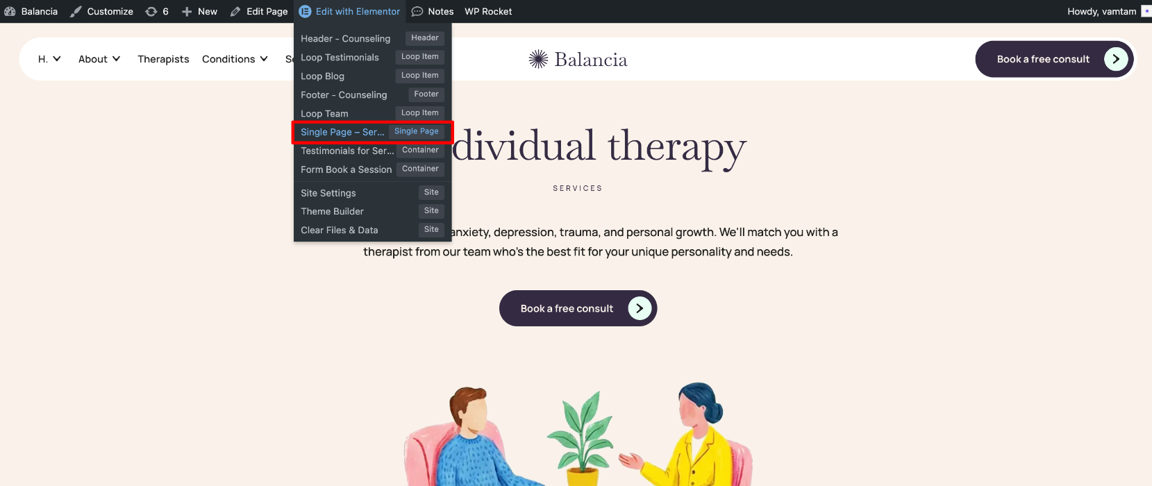 To begin, navigate to the Toolbar > Edit with Elementor > Single Page – Services